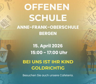 Am heutigen Tag durften wir an der Anne-Frank-Oberschule Bergen eine ganz besondere Veranstaltung erleben: Im Rahmen einer feierlichen Zusammenkunft wurde das Musicalprojekt „Liebe Kitty“ – initiiert von den ehemaligen Lehrkräften Detlef Höhlein und Elke von Meding – symbolisch an unsere Schule zurückgegeben.