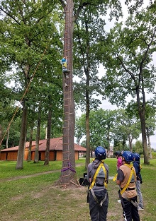 Besonders aufregend war das Erklimmen der freihängenden Leiter, um die notwendigen Schlüssel für die Schatztruhe zu sammeln. Viele Schülerinnen und Schüler haben sich trotz ihrer Ängste überwunden und sich für die Klasse der Aufgabe gestellt.